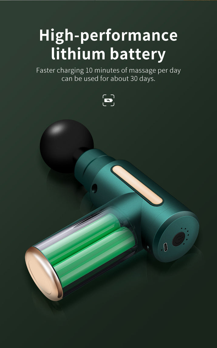 Answer 3: Equipped with a robust 1800mAh battery, the massage gun offers long-lasting performance, ensuring you can use it for extended periods without frequent recharging.